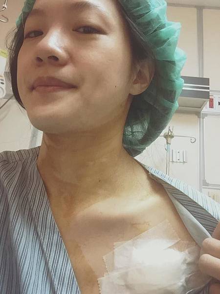 相較於乳房切除,這個是小手術,台大醫院為我安排全身麻醉,據悉,有些醫院是採局部麻醉的方式。這是我很清醒的被送進手術室,還東張西望好好看了一下沿途風景,醫生在幫我檢測的時候,我還是東張西望,醫生說,要開始偵測血管,她手上拿了一個很像遙控器的道具,我又在那邊充滿好奇的看,她默默跟護士說:「讓她睡好了。」看來我的好奇心不太受歡迎啊,一秒就陷入昏睡,下一秒醒來完成手術了。