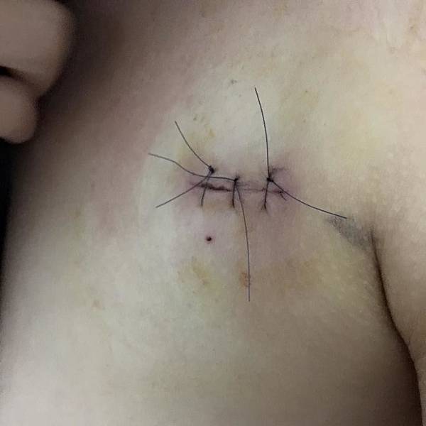 開完刀的部位,有點小幅隆起,感覺多了一個副乳。